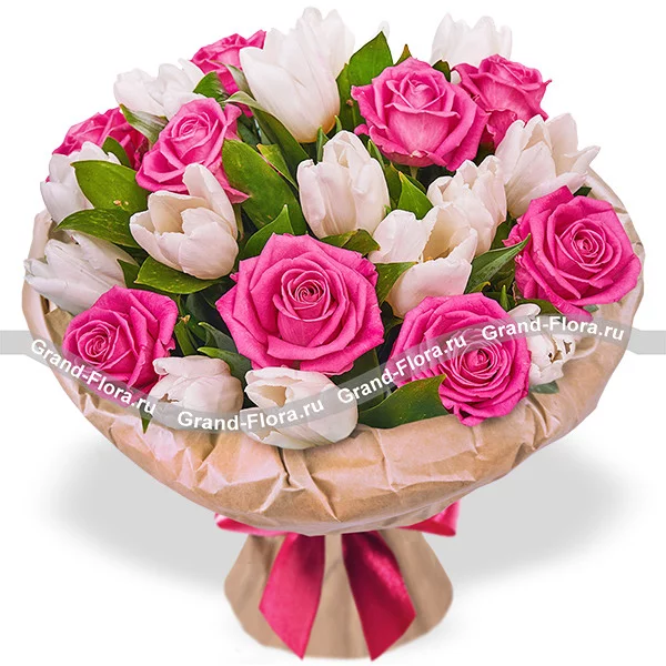 Нежные мгновения - букет из роз и тюльпанов
